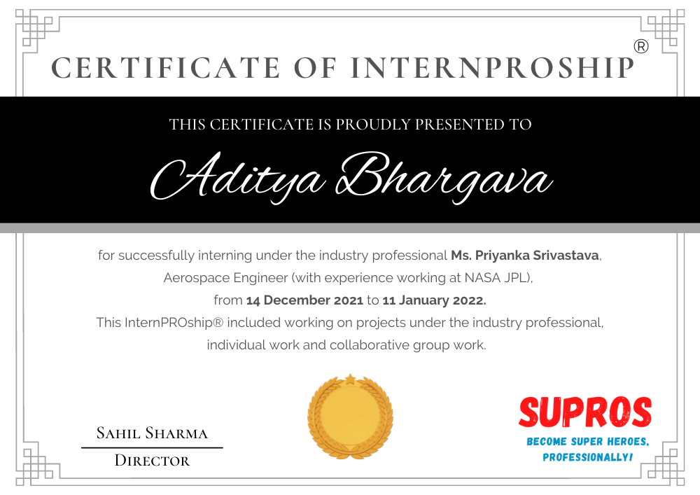 "The internPROship® with SUPROS was an enjoyable and memorable learning experience. The SUPROS Team was very approachable and helpful.This program helped me recogniSe my strengths and weaknesses in the field of Psychology. Looking forward to more such programs from SUPROS!"